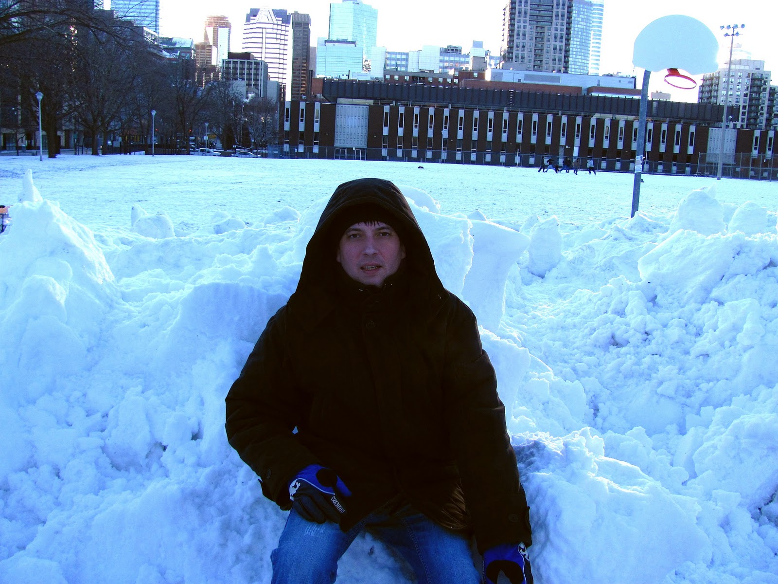 Прямо какая-то странная у нас зима - снег выпадал уже повсюду, кроме центра Торонто. Да и по-настоящему морозных дней было всего ничего: парочку на позапрошлой неделе, и вот на этих выходных тоже. Однако, нам мороз не страшен. Женя в своем зимнем обмундировании, доходя до работы, даже не успевает замерзнуть.