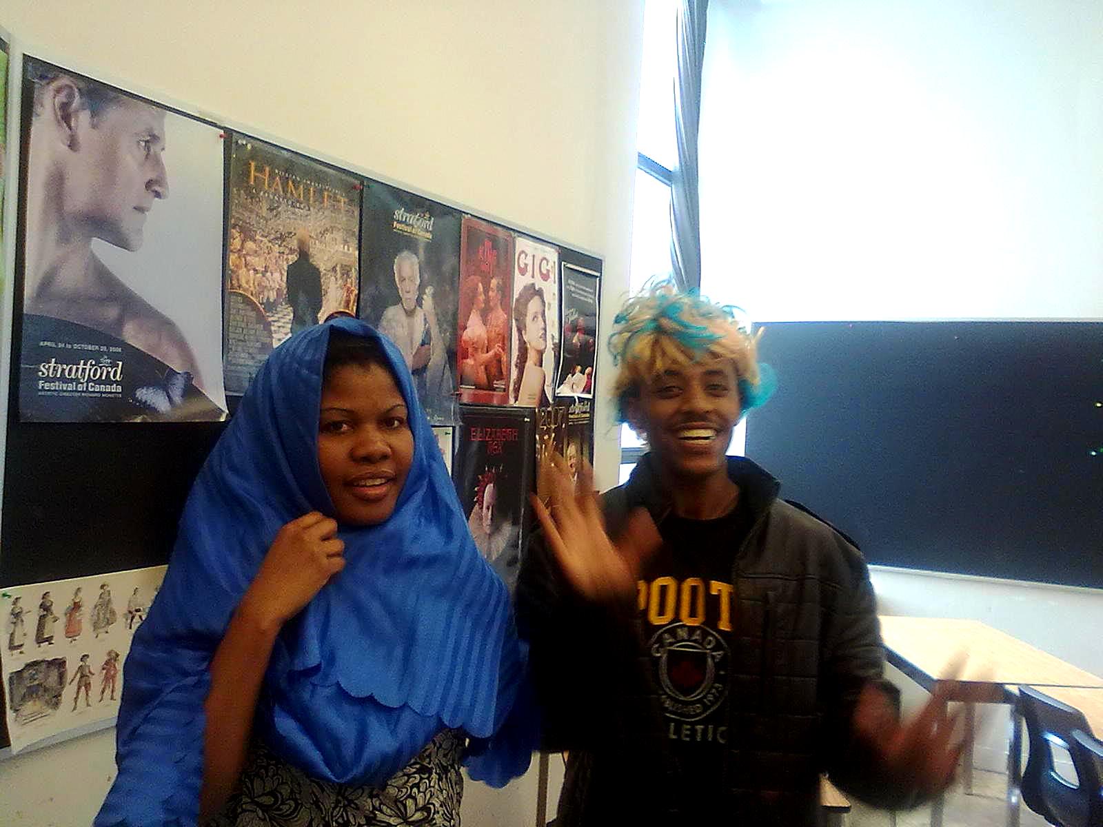 Вот, кстати, пример того, как он нам прививал любовь к Шекспиру. Это мы готовимся к очередной сценке, в которой я играла Джульетту, в синем платочке – моя няня, а африканский мальчик был моей мамой – Леди Капулет)))