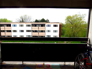 Кстати, про балкон. Он у нас находится в гостиной. Вид с него, честно говоря, не очень. Напротив соседний дом и только справа есть небольшой островок зелени с птичками и белками.