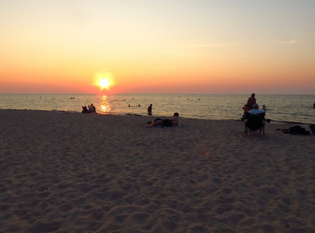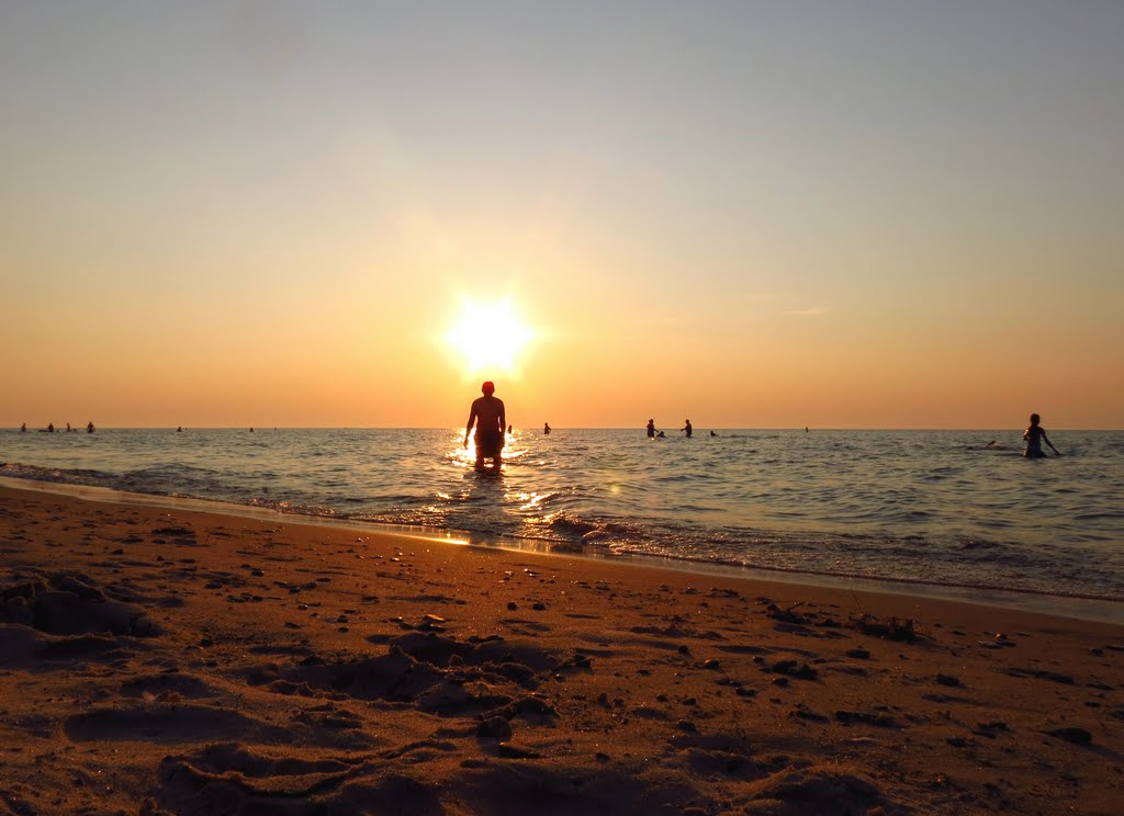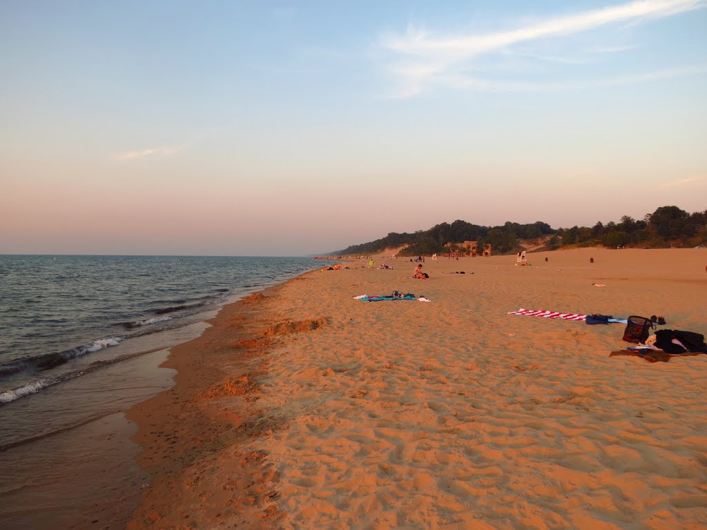 Ближе к вечеру мы благополучно добрались до небольшого городка штата Индиана, где у нас была забронирована гостиница. До Чикаго нам оставалось всего 70 км, но ехать туда мы решили только на следующий день. А этим же вечером мы отправились купаться и встречать закат на озере Мичиган, которое находилось всего в нескольких минутах езды от нашей гостиницы. Там мы нашли просто потрясающий пляж.