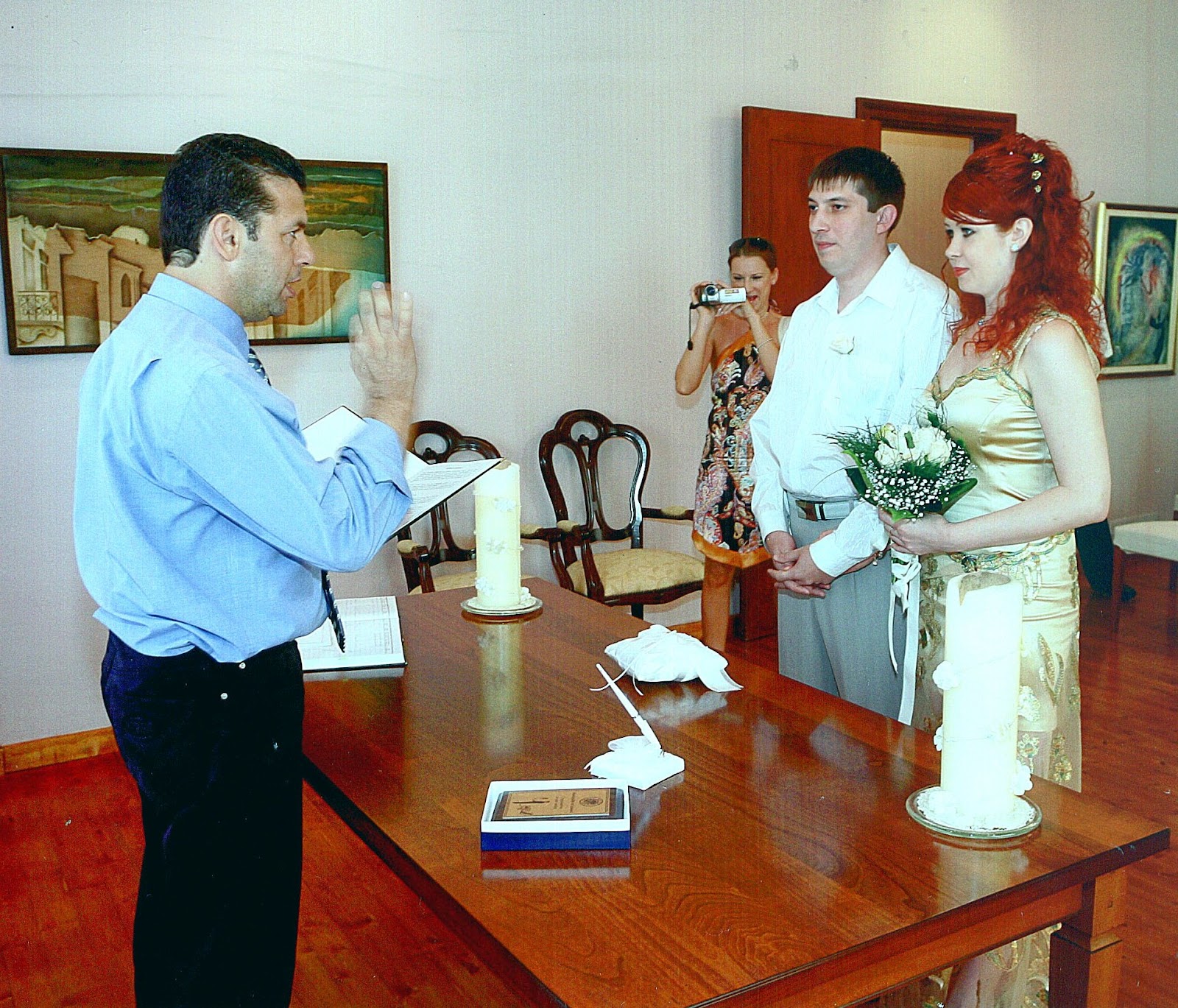 К нашему удивлению, церемонию вел мужчина. Очень веселый дядечка, то и дело шутил и смеялся.
