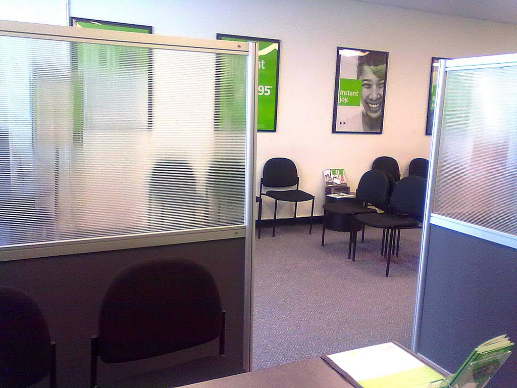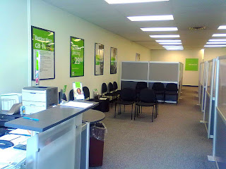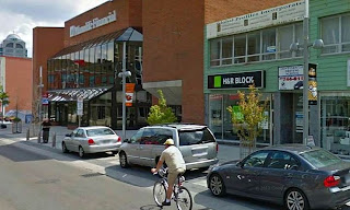 Ну а вот так выглядит моя контора с улицы. Видите вон ту белую надпись "H&R BLOCK" на черном фоне с зеленым квадратом? Вот это и есть мой офис.