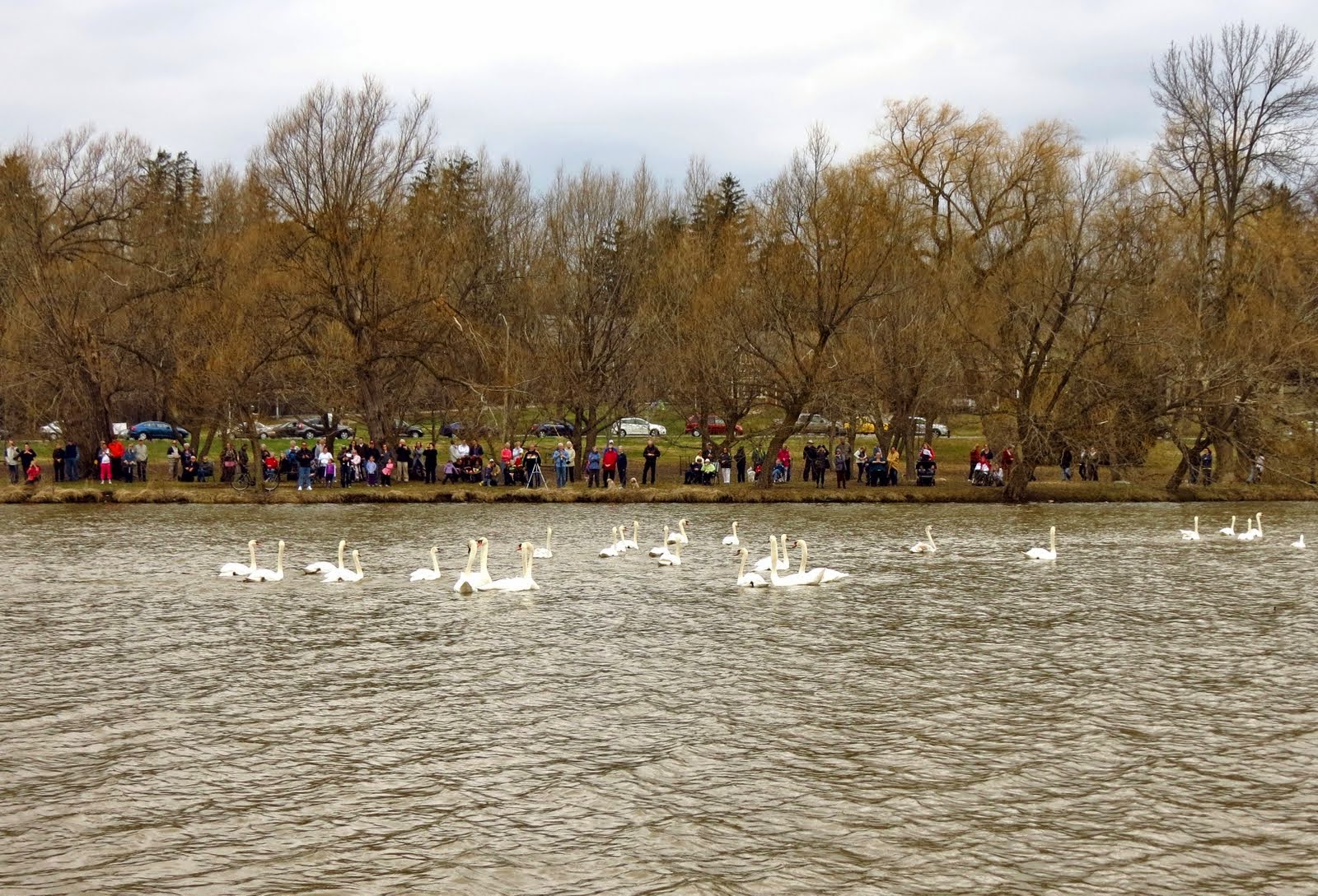 Итак, как это было... Началось все с того, что люди выстроились по обе стороны вдоль дороги, по которой лебеди должны были идти от своего зимнего домика к реке.