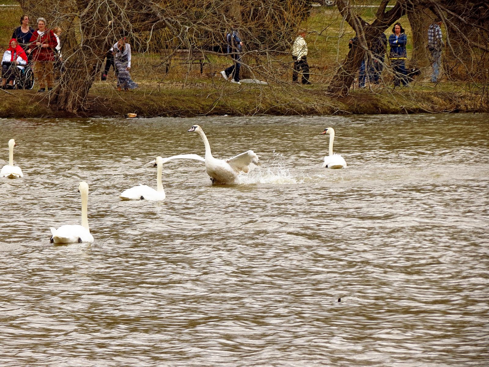 А народ вокруг ликовал. Все что-то кричали, хлопали в ладоши, смеялись и улюлюкали. Все фоткали этих лебедей и снимали их на видео. В общем, мы тоже прониклись сием действом. Это было как-то по-дурацки мило :-)))