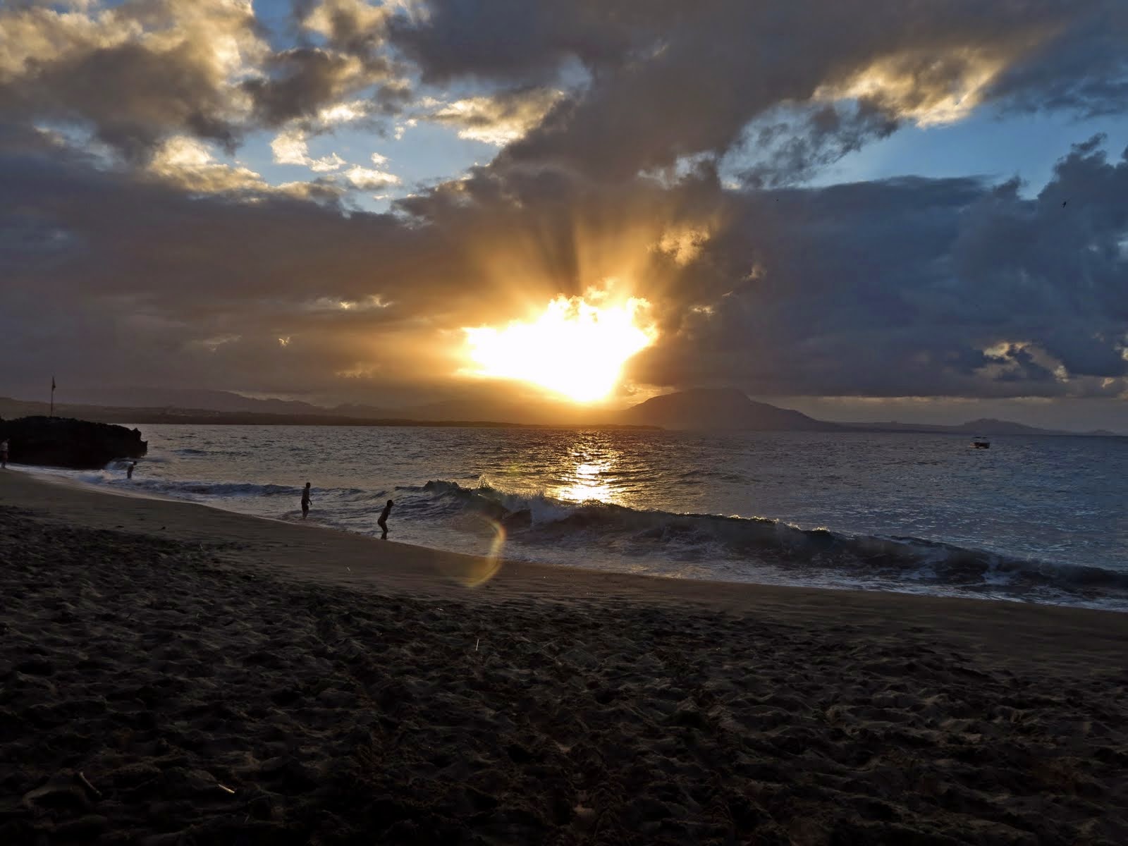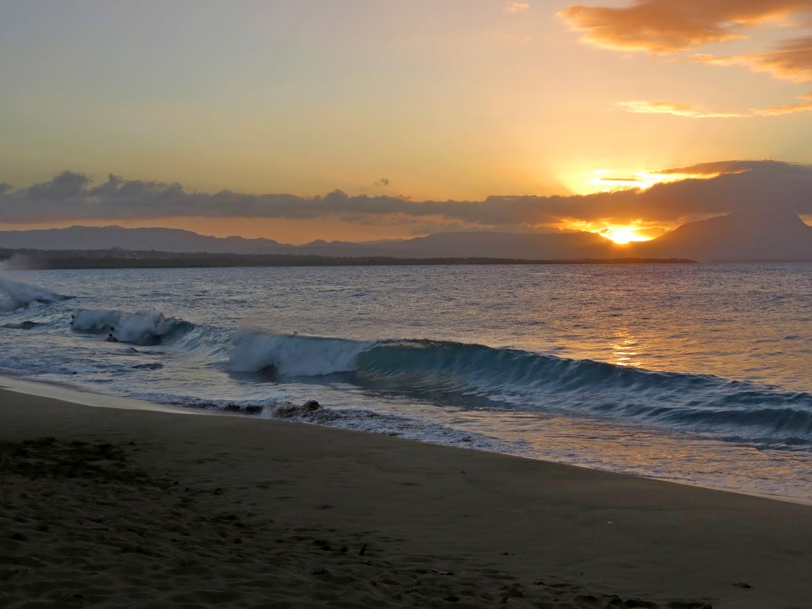 Сначала нас это немного пугало, но потом мы осмелели. Мы прыгали, ныряли и катались на волнах, визжа от удовольствия. Да и не только мы. Весь пляж гудел с приходом очередной мега-волны. Очень забавно было наблюдать, как люди разных возрастов резвились на волнах, как малые дети. А волны тоже забавлялись - срывали с людей купальники, выкидывали на берег и набивали полные плавки песка :) Две самые большие волны мне поймать не удалось. Они меня сами поймали. Я до сих пор помню это чувство, когда тебя крутит, бросает из стороны в сторону, а потом швыряет на берег, впечатав голову в песок. Ну просто незабываемые ощущения :) Потом очень страшно снова входить в воду, но хорошо, что этот страх быстро проходит. В общем, море нам подарило массу новых впечатлений.