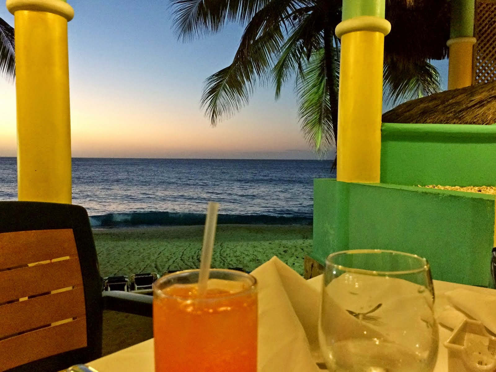 Иногда за ужином нам даже удавалось занять столик с видом на закатное море.