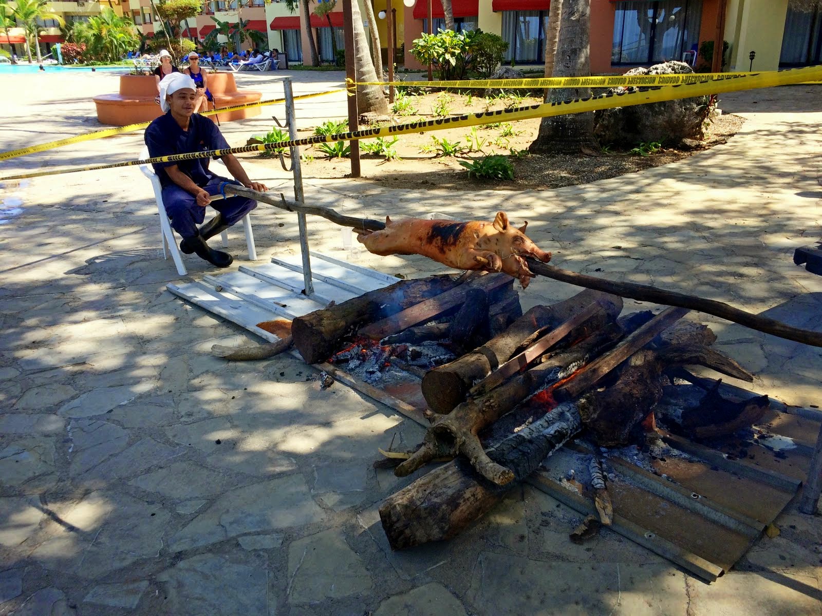 А на ужин нам однажды даже целого порося на вертеле зажарили.