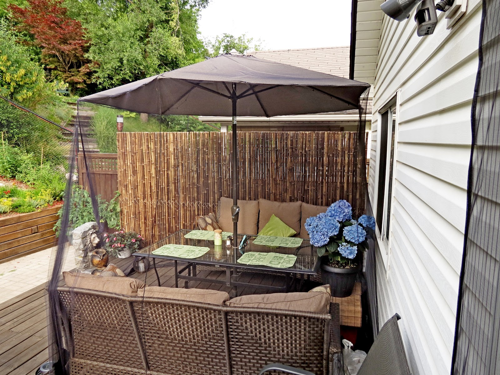Здесь мы постарались оборудовать все для комфортного времяпрепровождения. Вариант пока не окончательный и по мере возможности будет усовершенствоваться, но пока нам и здесь очень балдежно. А главное, что мы спрятались от соседей за высоким бамбуковым забором.