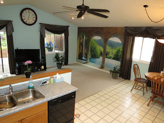 На фотке, это как раз видно. Я даже сначала не поверила, что это фотообои и придирчиво рассматривала:)) Потому что, обычно, фотообои дают эффект большой картины на стене, а тут - реально, как будто у вас там продолжение:))