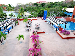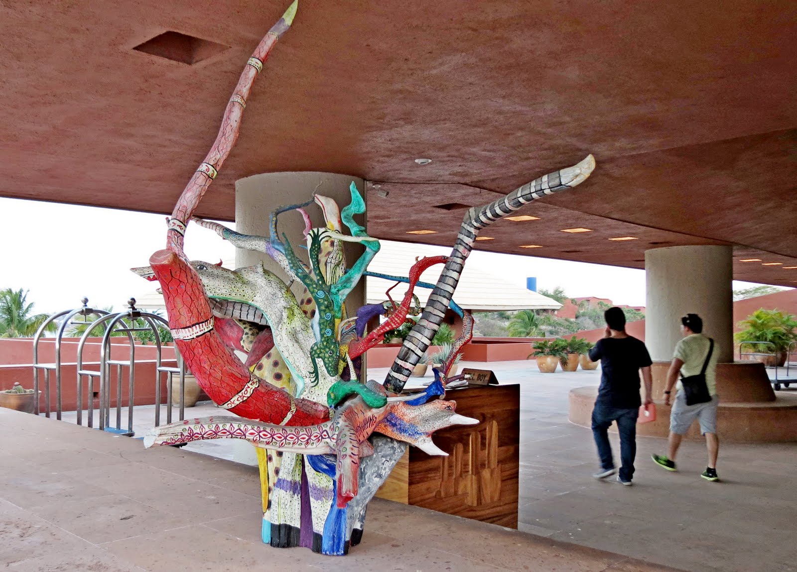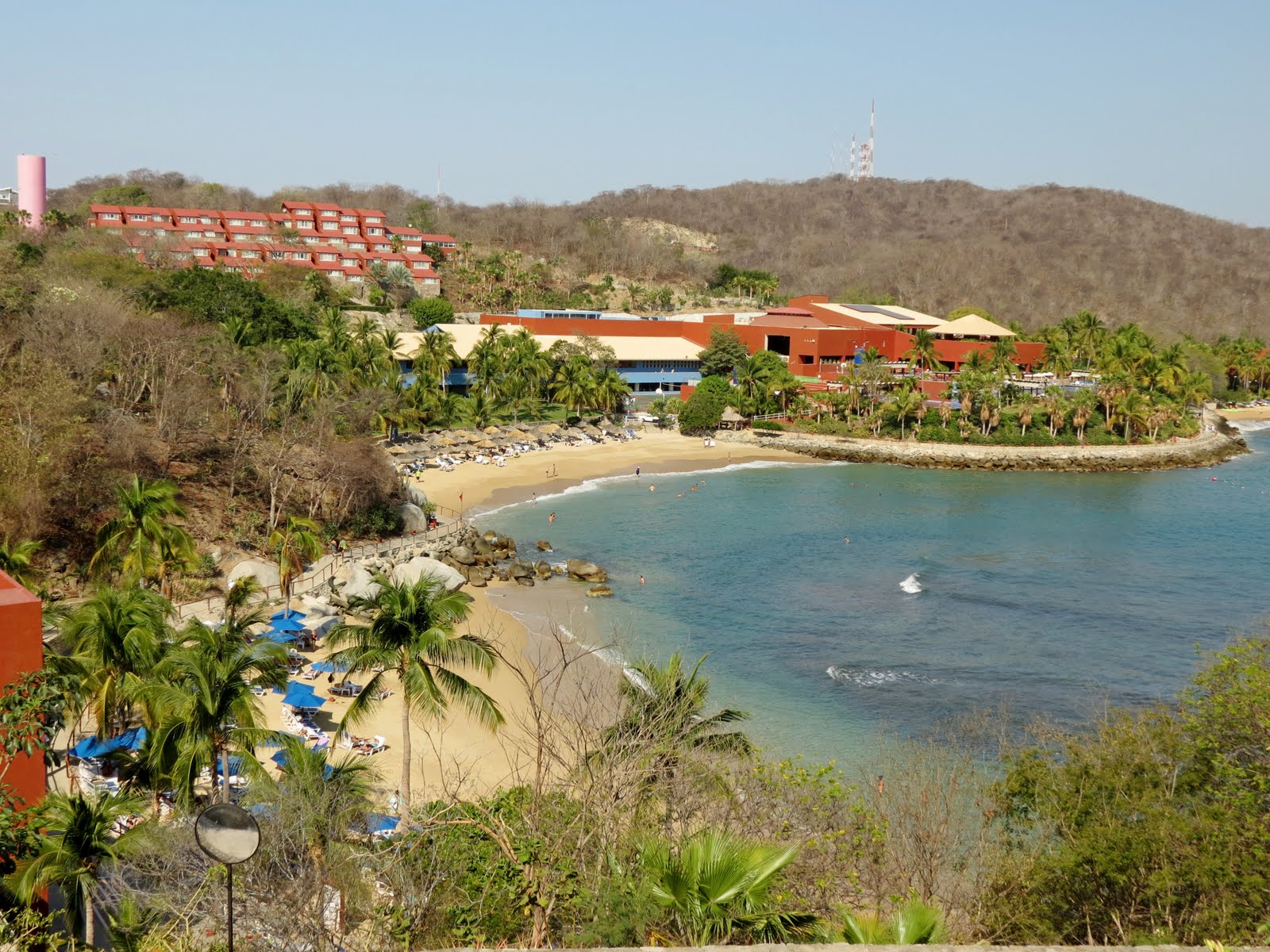 Уатулько в переводе означает «место, где лес восхитителен». К сожалению, мы были в период засухи и поэтому практически вся растительность в округе была сухой от недостатка влаги. Однако, территория отеля, в котором мы проживали, представляла собой огромный зеленый оазис. Весь отпуск, кстати, мы провели на территории отеля и ни на какие экскурсии ни ездили. Мексика ведь, как известно, довольно неспокойная страна, поэтому мы решили лишний раз не рисковать. К тому же, отель в котором мы остановились, был просто огромный, нам было чем там заняться и совсем не было скучно.