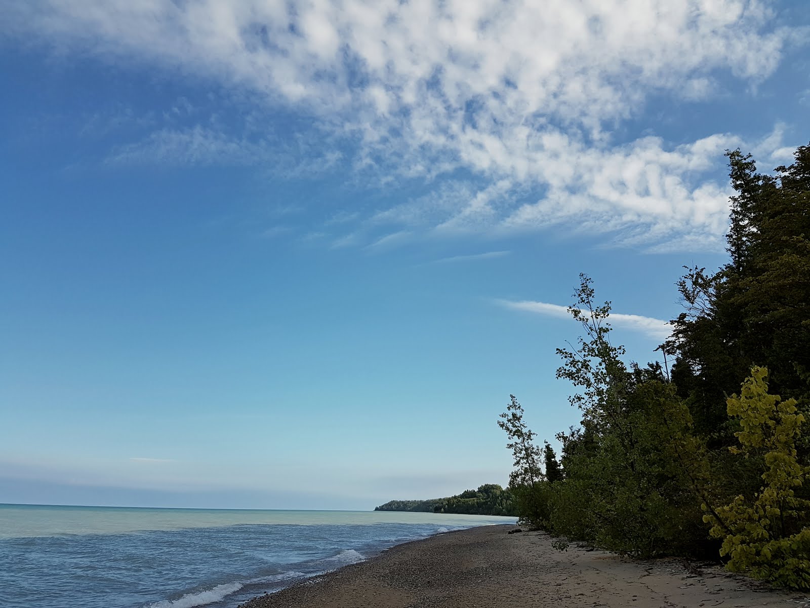 Там мы и расположились. Изначально у нас были планы устроить пляжную вечеринку, но с погодой нам в этот раз, как и предыдущую нашу поездку на Гурон, снова не повезло. Когда мы приехали дул страшный ветер и сильный ливень, шедший всю ночь, только-только закончился. Море сильно штормило и песчаная полоса пляжа скрылась под водой.