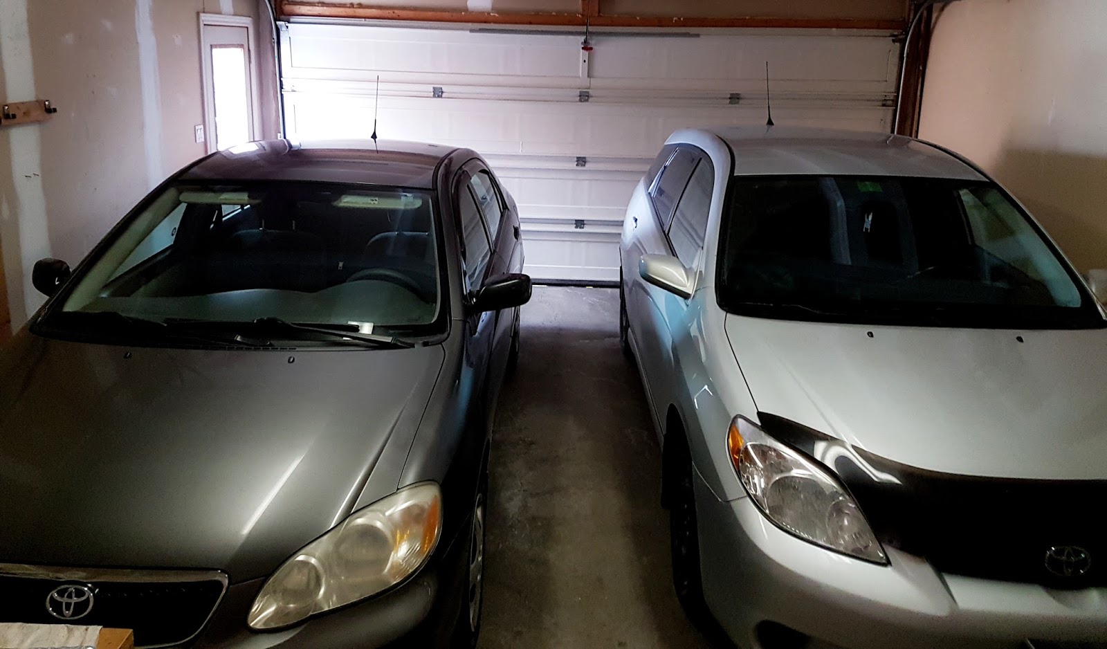 Недавно мы купили еще одну машину, так как одной нам теперь стало недостаточно. Я забрала себе Матрикс, а Жене мы купили его любимую Короллу. Хорошо, что у нас гараж вместительный :)
